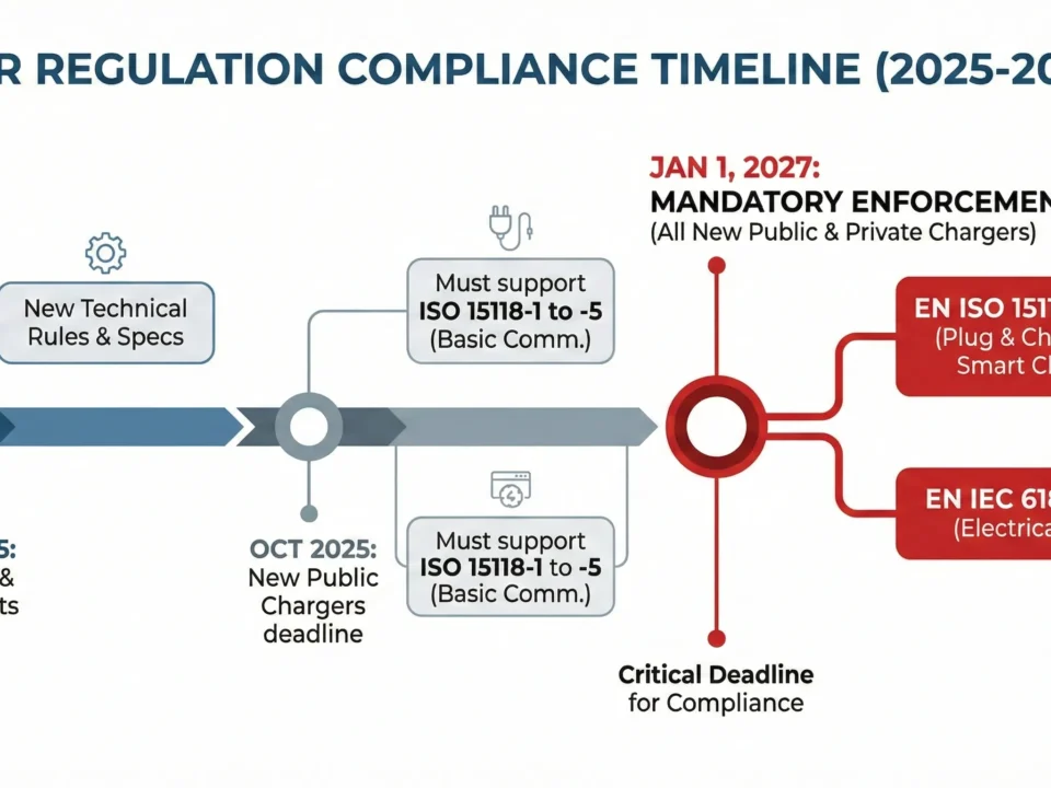所有新建及翻新充电桩必须全面支持 ISO 15118-20 (即插即充) 与严苛网络安全要求。